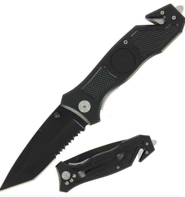 lock knife with aluminmun handle with belt cutter and glass breaker, with pocket clip.